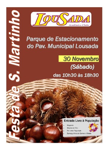 No dia 30 de Novembro (Sábado) com início pelas 10h30 no Parque de Estacionamento do Pavilhão Municipal de Lousada, realizaremos a Festa de S. Martinho do Lousada A.C., com entrada livre a toda a população.